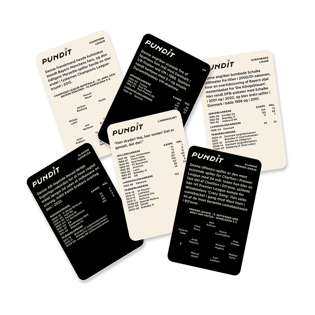 Gå ombord i 900 spørgsmål på tværs af mindeværdige kategorier som Premier League op gennem tiderne, Landsholdet, diverse Europæiske Ligaer eller vores egen elskede Superliga.