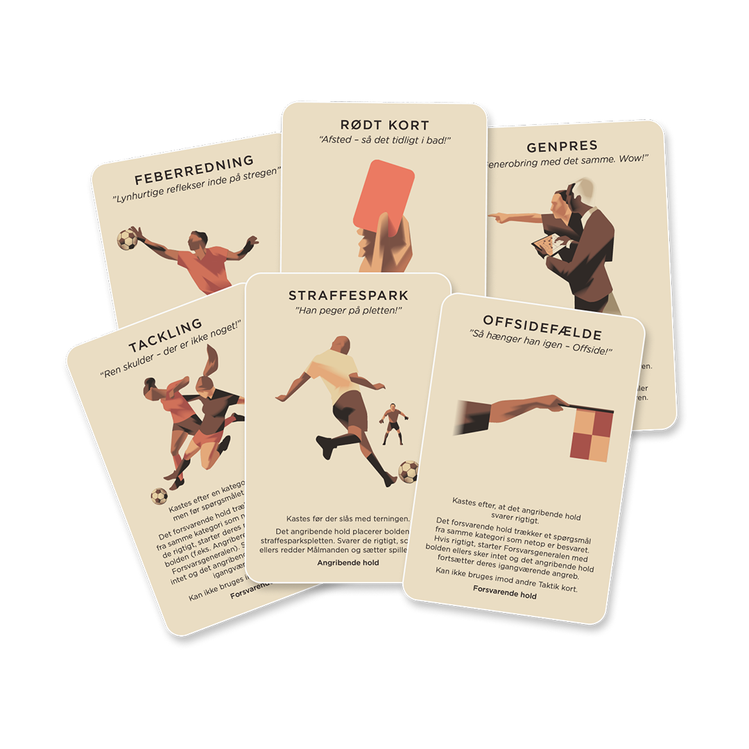 Et brætspil, hvor venner og familie kan quizze hinanden i fodboldminder.